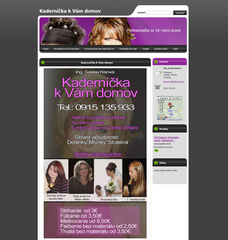- 6. pozícia v Google vyhľadavači pri slove "kadernicka"